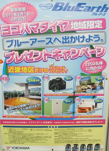 2月になりましたがまだまだ寒い日が続いていますね。履き替えはまだ先ですが、国産各タイヤメーカーからは新商品が発売され、すでにご購入頂いたお客様もいらっしゃいますよ。ヨコハマタイヤでは近畿地区限定のキャンペーンも始まりました!!タイヤの評判も上々です。価格もいきなり大特価!で販売中!!この機会に是非、お気軽にご来店・お問い合わせ下さい!お待ちしています!!