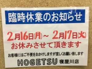 2月16日17日を、お休みさせて頂きので