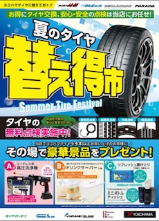 ヨコハマタイヤの『夏のタイヤ替え得市』の季節です。