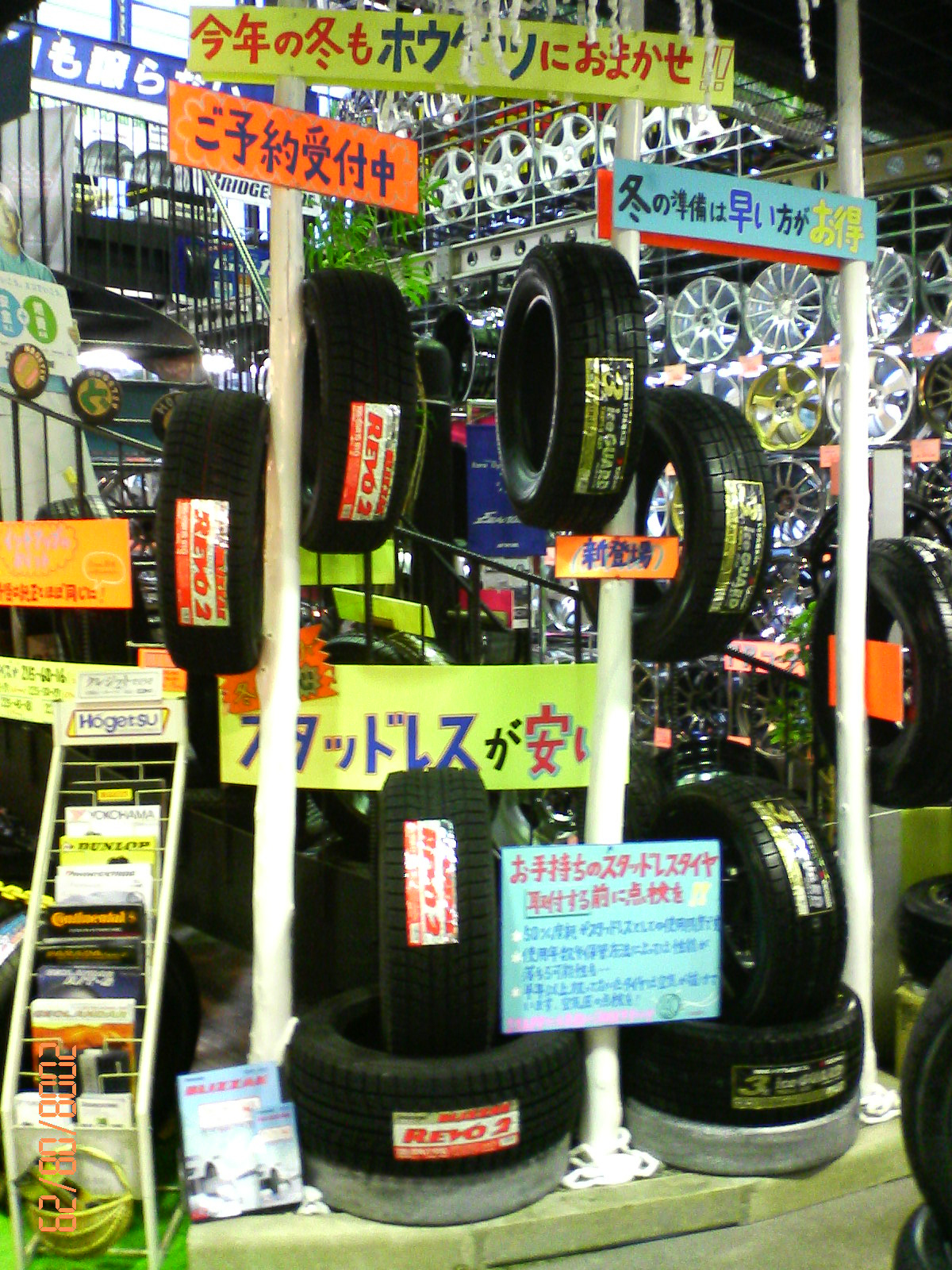 まだまだ暑い日が続きますが、朝晩は少し涼しくなり 秋の気配が少しずつ訪れてきたように思います。 当店でも、少し早目ではありますが、冬用のタイヤが入荷致しました。 メーカー新商品、従来品など、スタッドレスタイヤが続々入荷中です。 今年は、スタッドレスタイヤ用のホイールもデザインにもこだわって、 取り揃えました。 お近くの方はぜひその辺もご覧になりに来てください! 今なら、タイや単品、セットともに早割り中です。