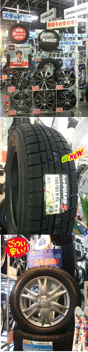 朝夕涼しくなり、日中も過ごしやすい気候となってきましたね。寝屋川店では日々スタッドレスタイヤのお問い合わせが多くなり、ご予約もたくさん頂いています\(~o~)/今シーズンは新型スタッドレスタイヤが3メーカーより発売され、性能もさらにUPしていますよ。ヨコハマタイヤのアイスガード5(IG50)の試乗会に来月参加してきますので体感レポート致しますね☆彡早期予約でお値引もしていますのでお早めにご検討下さい!! ※スタッドレス用ホイールもご用意していま〜す!(株)タイヤショップ抱月 寝屋川店 〒572-0077 大阪府寝屋川市点野5-12-3 TEL:072-826-1005 FAX:072-828-7706 営業時間 AM10:00〜PM8:00 (日・祝祭日はPM7:00) 定休日 火曜日