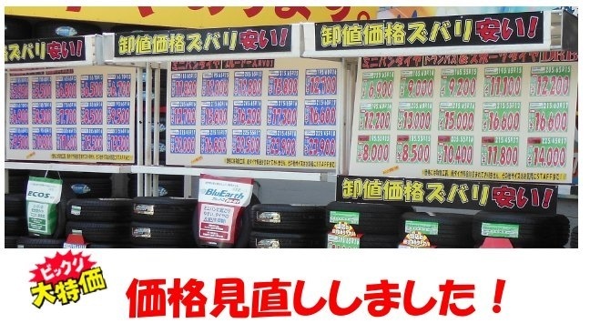 GWがやってきます。車でお出かけの方、タイヤは大丈夫でしょうか?当店ではGWまでの大特価!!フェア開催中です。お買い得タイヤが盛りだくさん!!この機会に是非お買い求め下さい。タイヤの無料点検も実施中です。お気軽にお立ち寄りください。